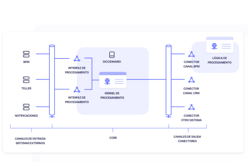 Integra una biblioteca de transacciones disponible para distintos sistemas, facilitando la estandarización de la lógica transaccional y promoviendo la interoperabilidad.